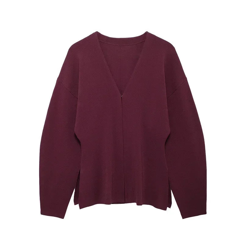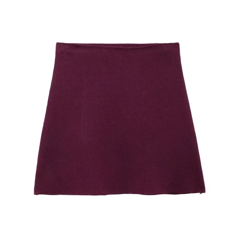 Elara striksættet er den perfekte blanding af elegance og komfort. Dette todelte striksæt består af en stilfuld V-hals sweater med lange ærmer og en feminin A-formet nederdel i en dyb vinrød farve.